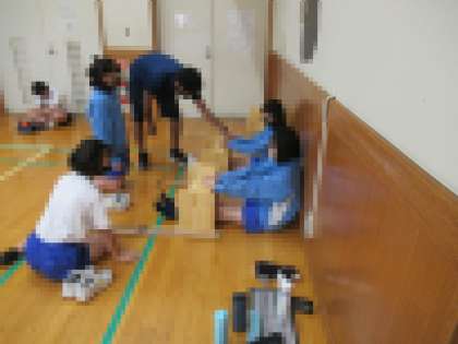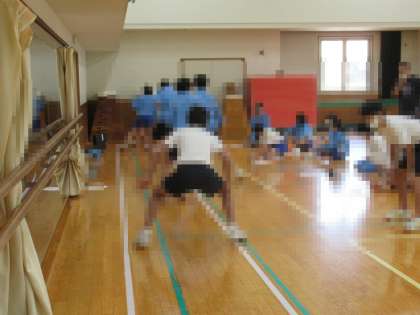 反復横跳びや握力などの定番のテストです。自己記録の更新を目指して、一生懸命に取り組んでいます。
