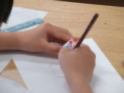 最後の教科は美術でした。サイコロや靴のデッサンなどがありました。一生懸命に取り組む姿勢がありました。