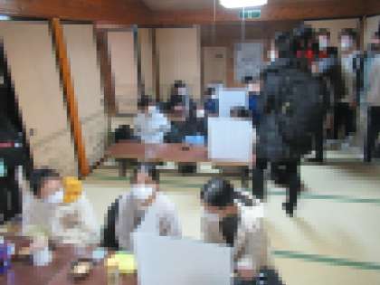 奥庭にある「奥庭荘」で昼食です。学校で使用しているパーティションを使い、感染症対策をしながら昼食をとりました。