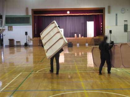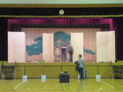 体育館のステージに大道具が入り、舞台ができました。いよいよ開演です。