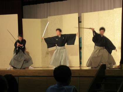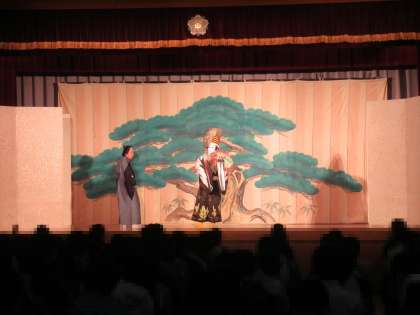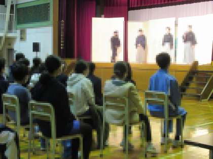最後は、五穀豊穣と合格祈願を祈り「操り三番叟」を演じていただき、全校生徒で鑑賞しました。コロナ禍で失った歌舞伎鑑賞教室を再現できた一日となりました。