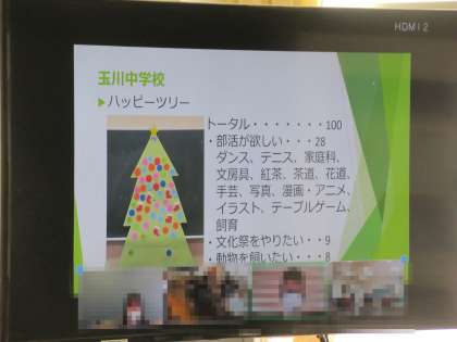 尾山台中学校で「サミット報告会」が行われ、本校生徒会役員が参加しました。