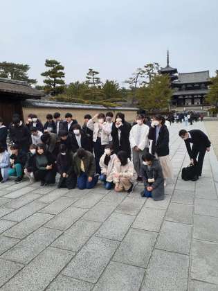 クラス写真を撮りました。すいているので参道の真ん中で撮影しました。