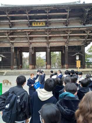 生徒は少し疲れたのか、バスの車内は静かになりました。奈良にお別れです。