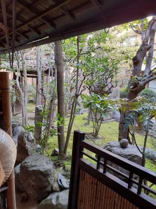 窓の外を見ればきれいなお庭です。 生徒はこれから部屋の整理に入ります。