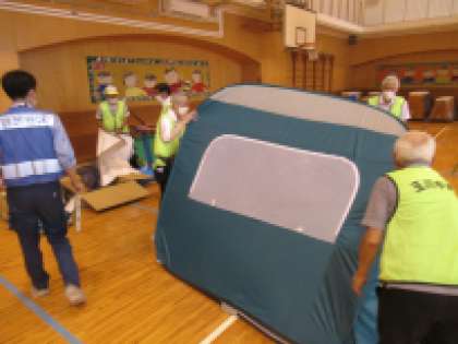 テント設営、炊き出し、マンホールトイレなどの設置を一通り開設しました。地域でも万が一に備えた訓練です。ご参加の皆様、暑い中大変お疲れ様でした。