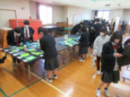 また、放課後は学芸発表会(展示の部)準備があり、各学年・教科の係生徒が展示作業を行いました。