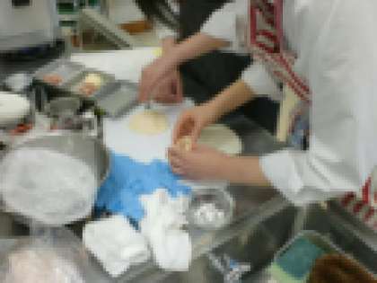 3年生の家庭科で「簡単 肉まん」作りを行いました。