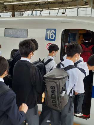 定刻9時に出発しました。いよいよ修学旅行の始まりです。