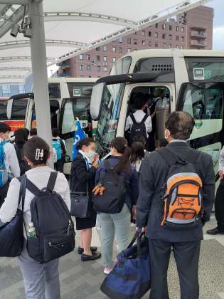 11時15分、観光バスに乗り換えて法隆寺に向かいます。こちらは曇りです。