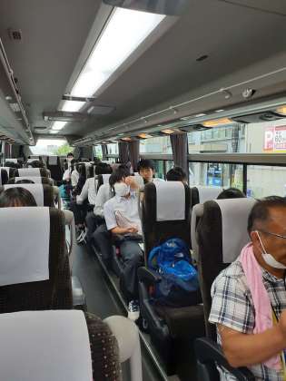やや時間が遅れ気味のため、車中でミーティング中です。まもなく奈良公園に着きます