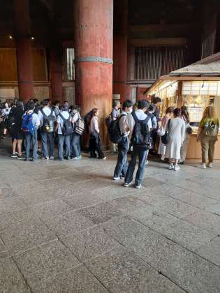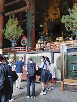 大仏様にお願いです。また、御守りを求める生徒たちが多くいました。