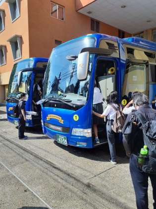 出発式を終えて、ほぼ予定の通り8時33分に出発しました。楽しい校外学習の始まりです!