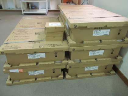 全ての普通教室の室内機が外れました。そして設置する新しい室内機が届きました♪