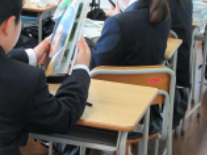 1年生の配布数は1番多い、16冊の教科書でした。早速、教科書の中を確認してうれしそうな表情でした。中学生らしい表情が見えました(^^♪
