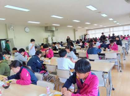 屋外でのラジオ体操で冷えた身体に、朝食の豚汁は一際美味しく感じました。