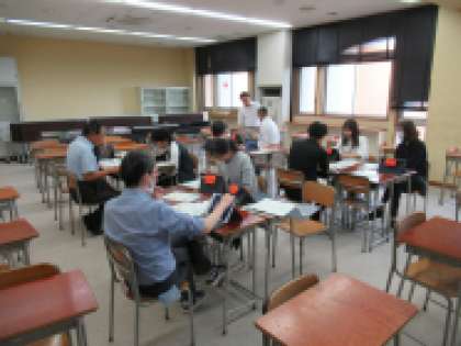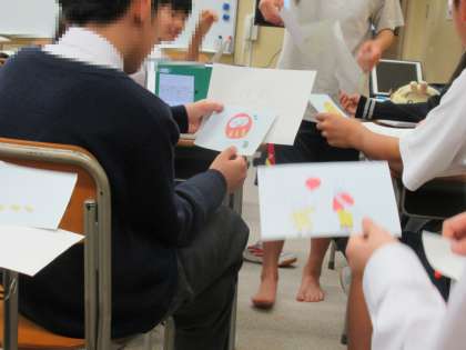 1年生に協力をいただき、教科「日本語」教員研修会を行いました。