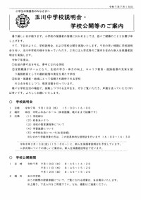 玉川中学校卒業式への卒業生等の入場について、以下のようにいたしますのでご協力く...