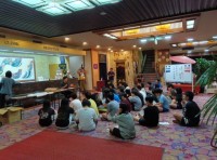 入浴も終わり、室長、班長会が行われています。明日の荷物送付のため、送り状を準備し...