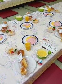 今朝は爽やかなお天気です。朝食は大きな会場でバイキング形式です。