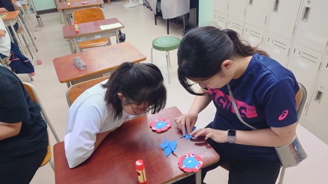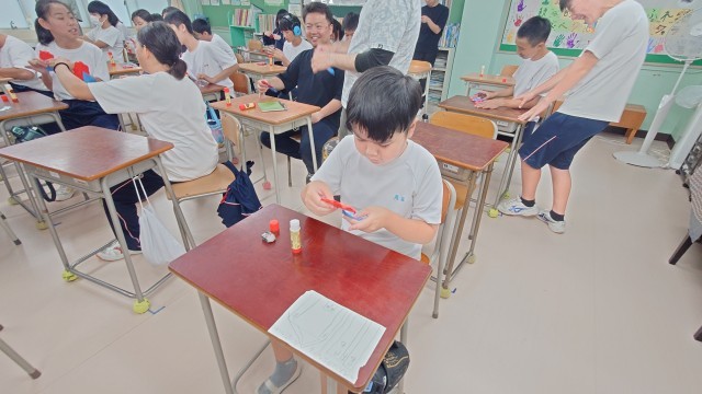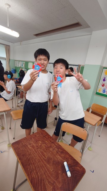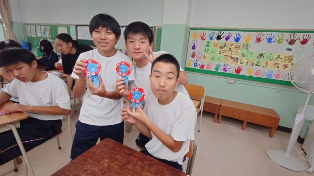 3年生が修学旅行に行って会ったミャクミャクづくりを今日は頑張りました。