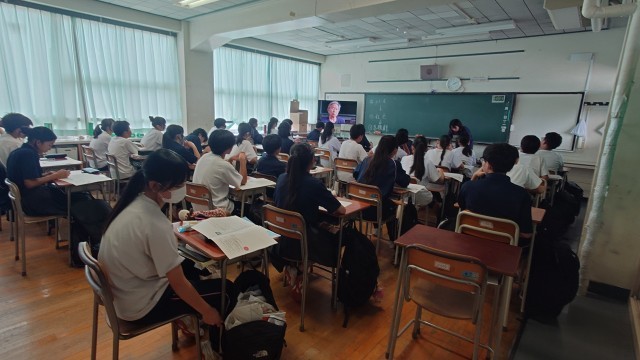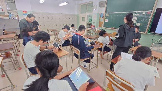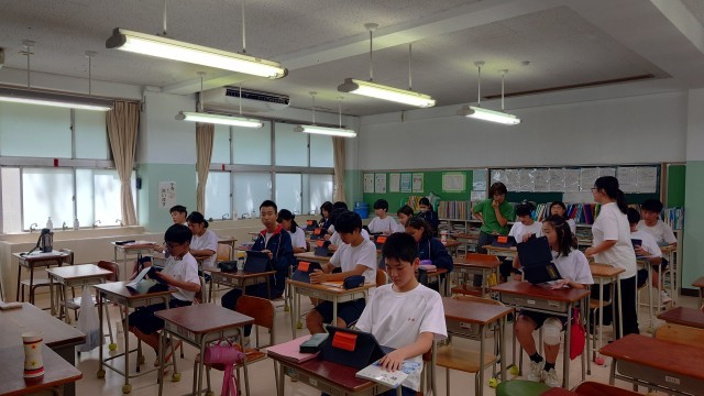 I組は、キュビナにチャレンジ。2年生は人権平和学習の続きです。