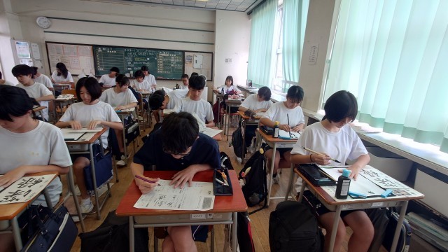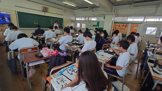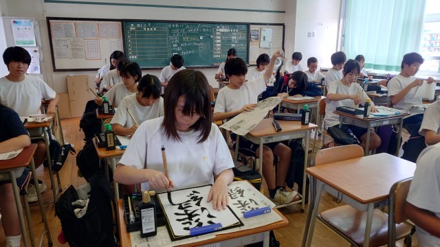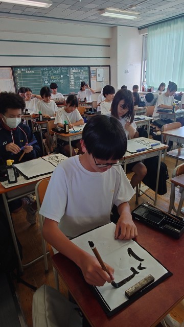いい字書きますね。姿勢もいいです。筆の入りもとめもいいですね。