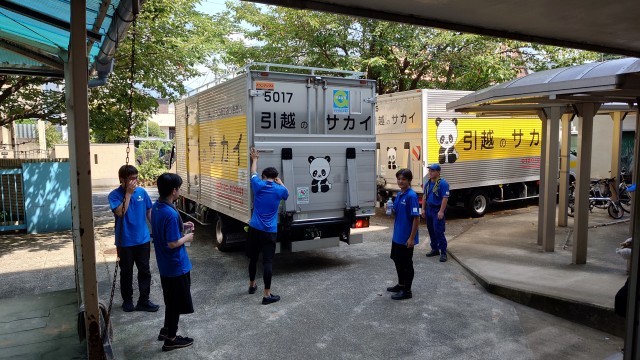 引っ越し業者の皆さんが朝から精をだしてくださいます。暑い中ご苦労さまです。