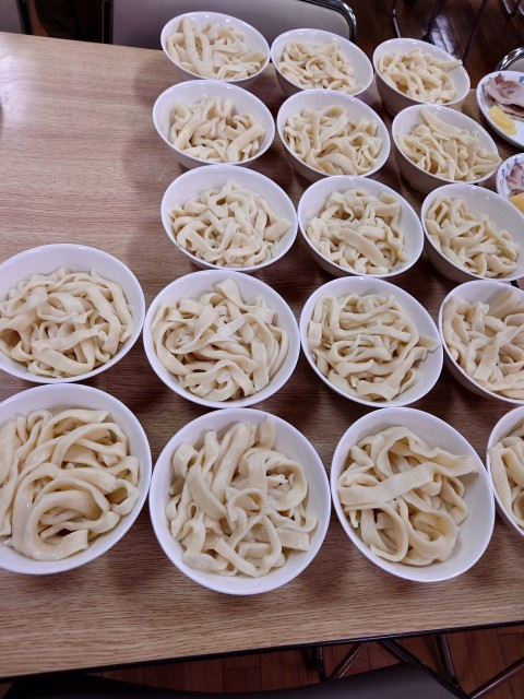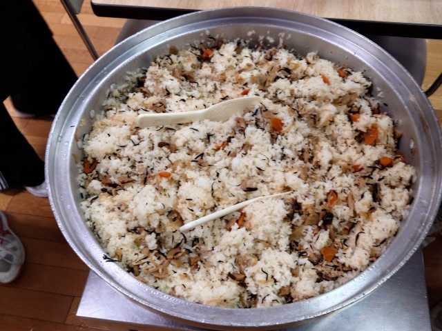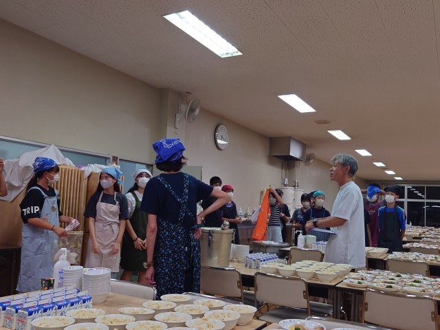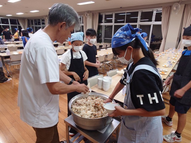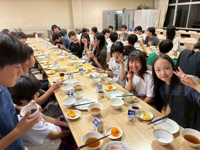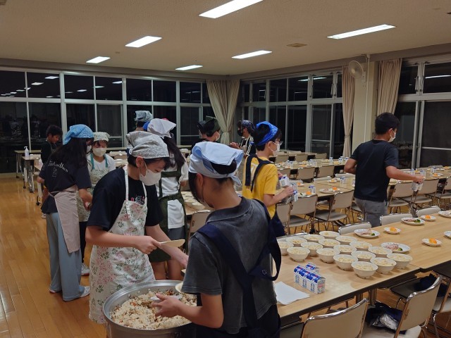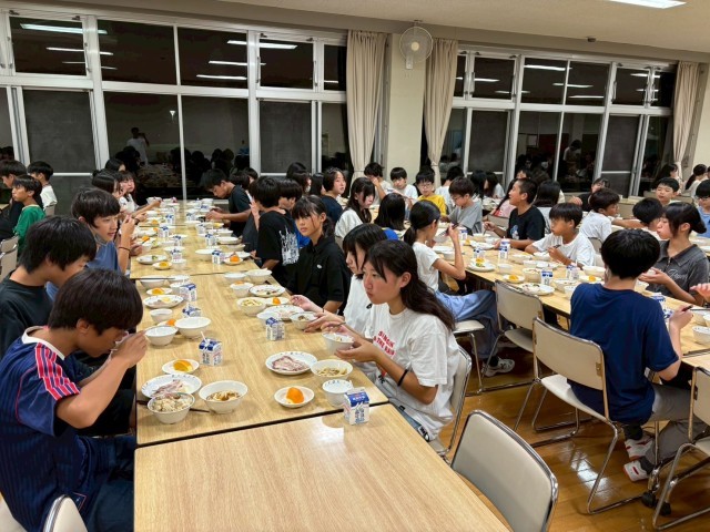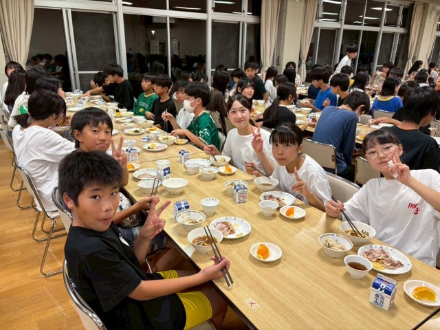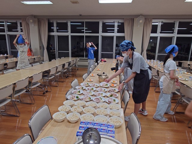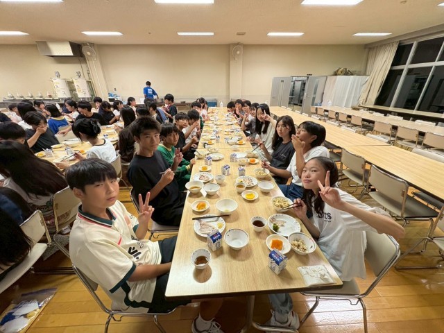 一日目の夕食です。食事係が準備をして、みんなで頂きます。