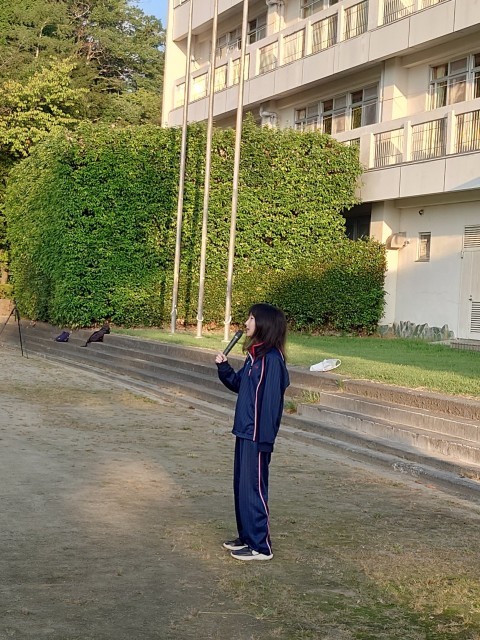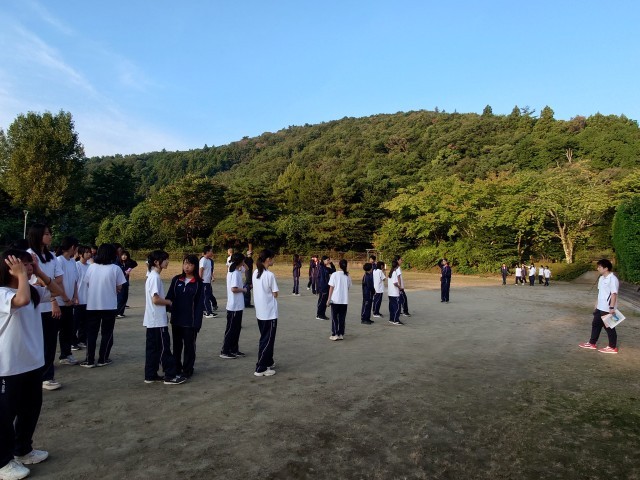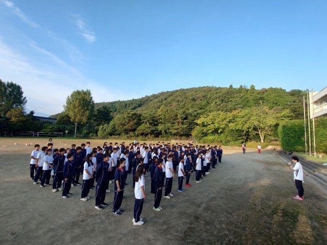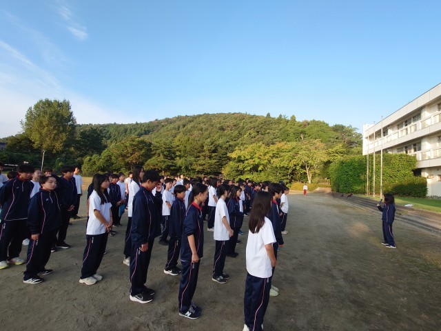朝礼のあと、眠気眼で学年写真、クラス写真を撮りました。