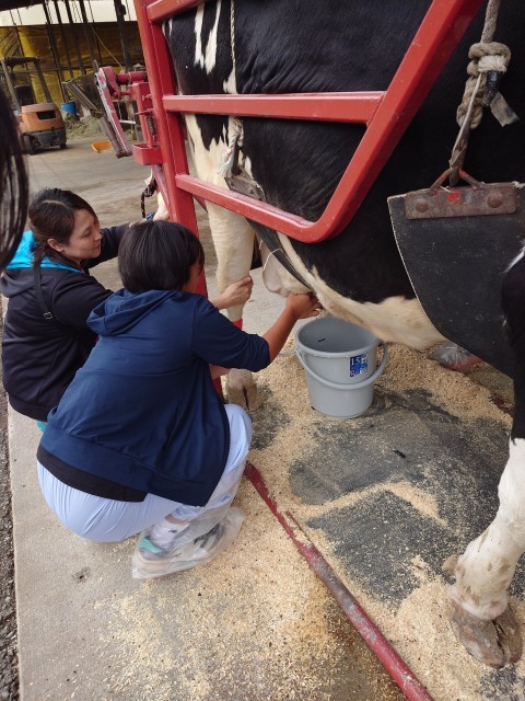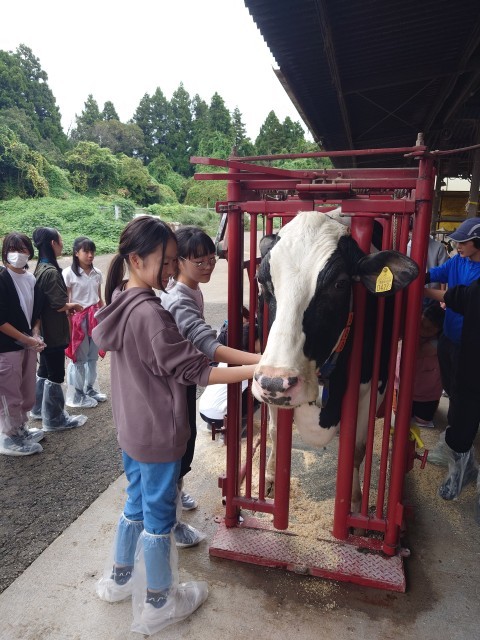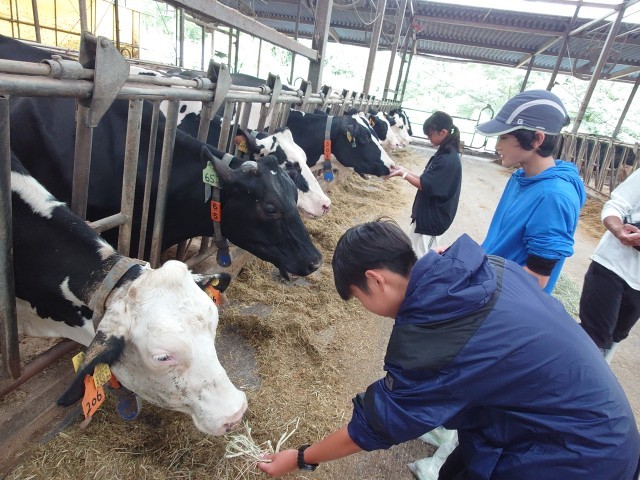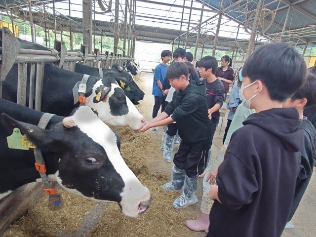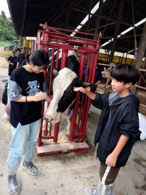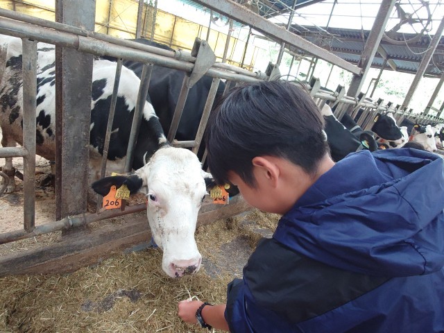 えさやり、乳搾りのあと、牛をいとおしそうになでていました。