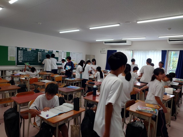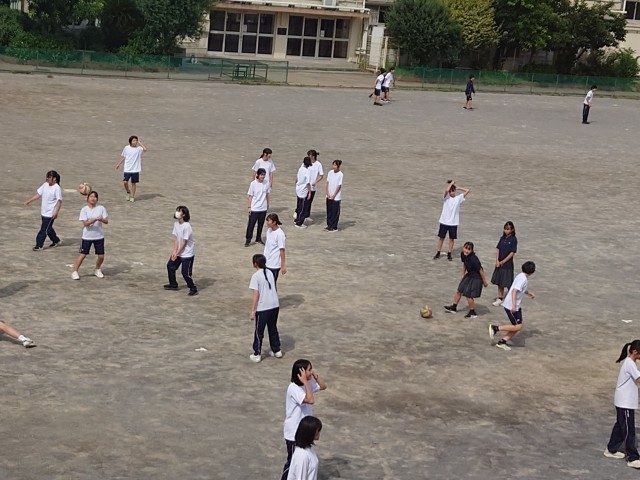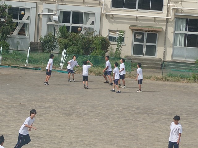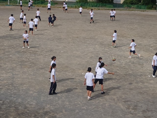 移動教室から一年生が帰ってきて、全学年揃って、久しぶりの弦中生活。昼休みは校庭で元気に遊ぶ姿が見られました。最近は、バレーボールがはやっているみたいです。