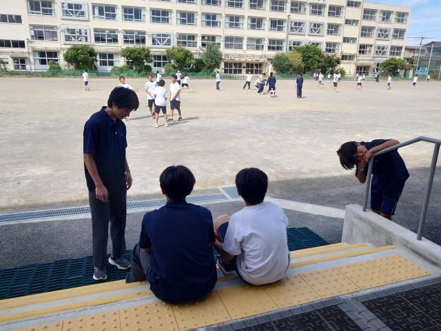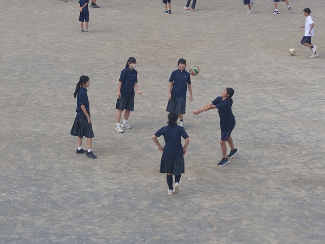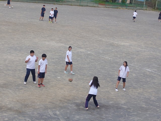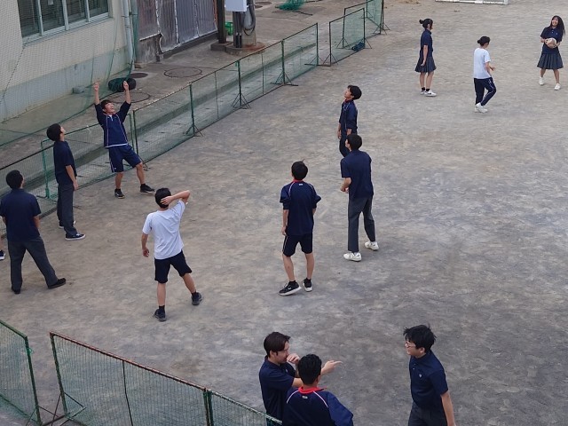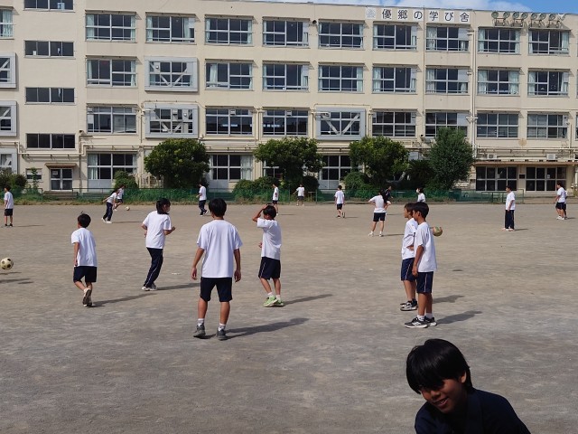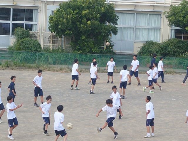 天気も良く休み時間、校庭でよく遊ぶ弦中生です。青春!!
