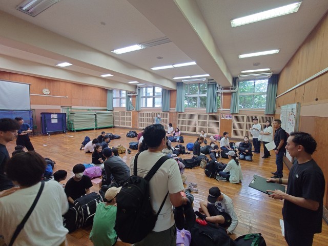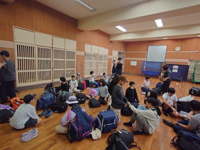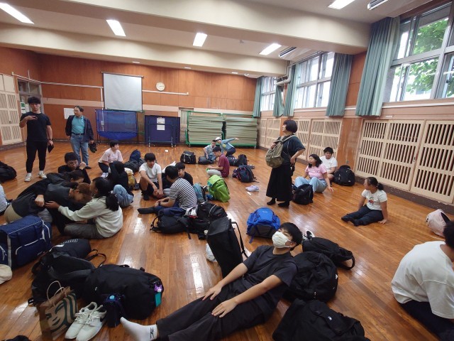 I組河口湖連合移動教室が始まりました。出席する予定の人は、全員時間通りに集合しました。