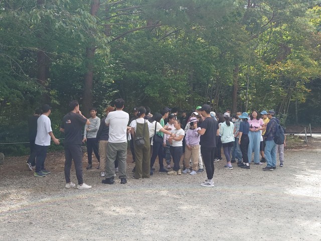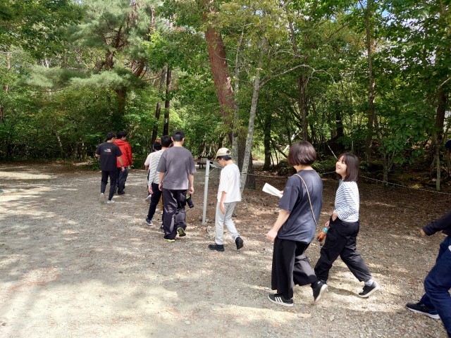 フィールドセンターの方のお話を聞いて、体験場所へ移動しました。