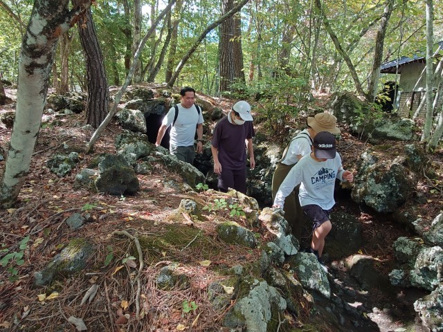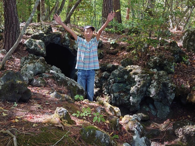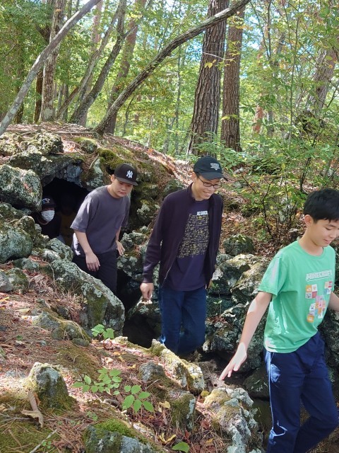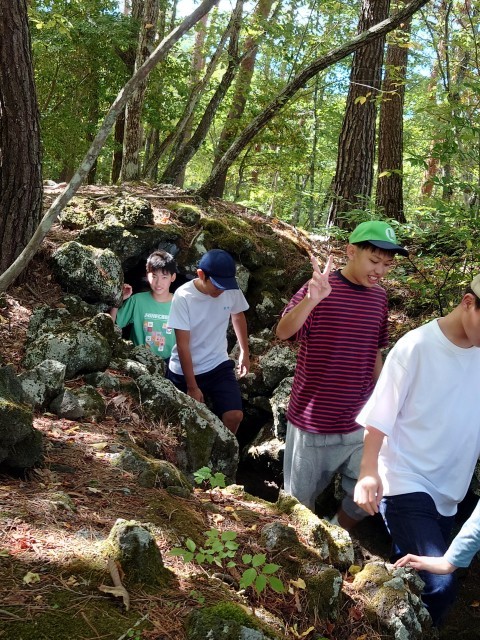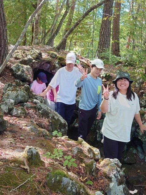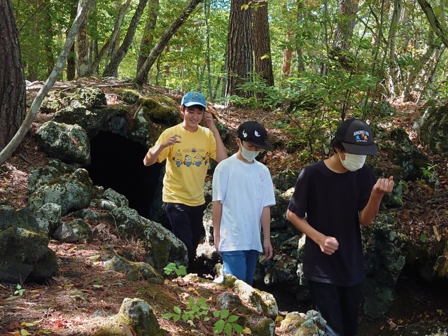 先発チーム。無事に洞窟から出てきました。中はとても涼しかったそうです。