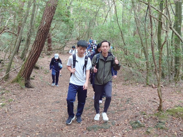青木ヶ原樹海の中のハイキング、緑と光が美しいコントラスト。普段は絶対に見られない景色です。