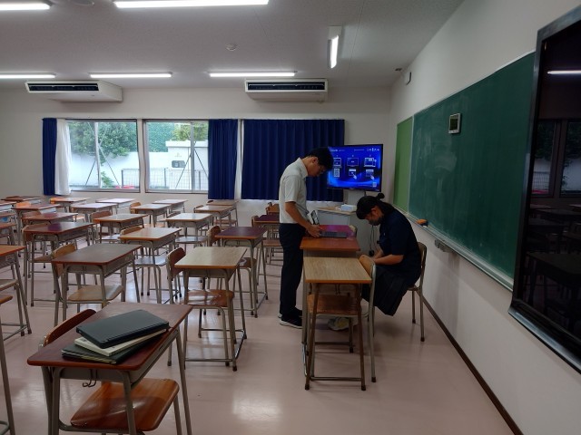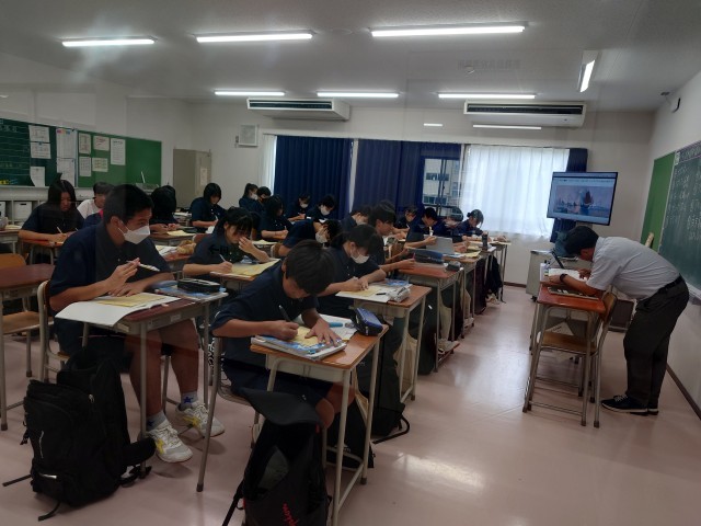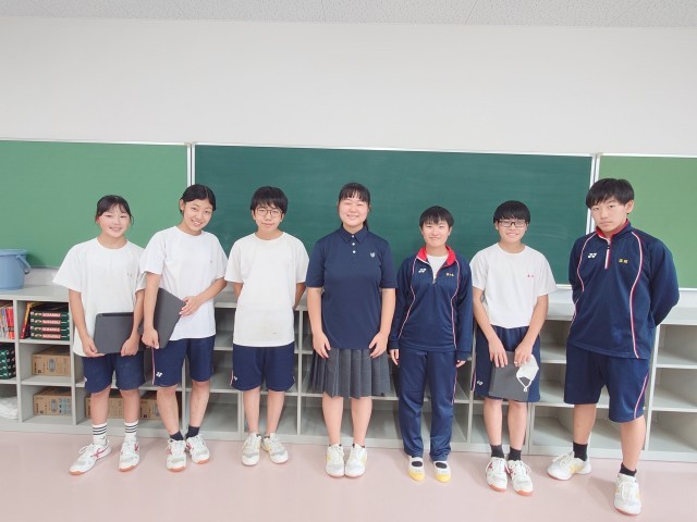 給食中、生徒会新役員の挨拶がありました。新本部役員、新しいメンバーで、弦中をより良い学校にするべく、頑張りまーす。みんなで協力していきましょう。