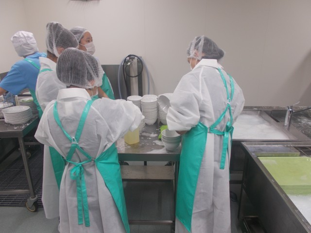 今日は2学年がいませんが、それでも400人分の食器や食具を洗浄します。