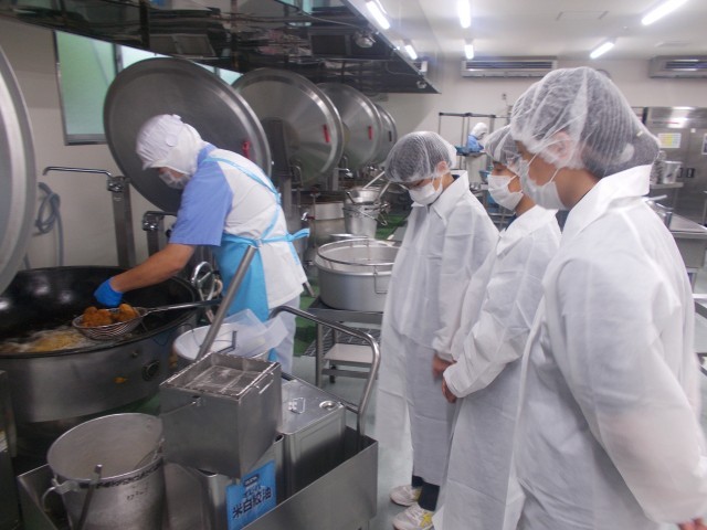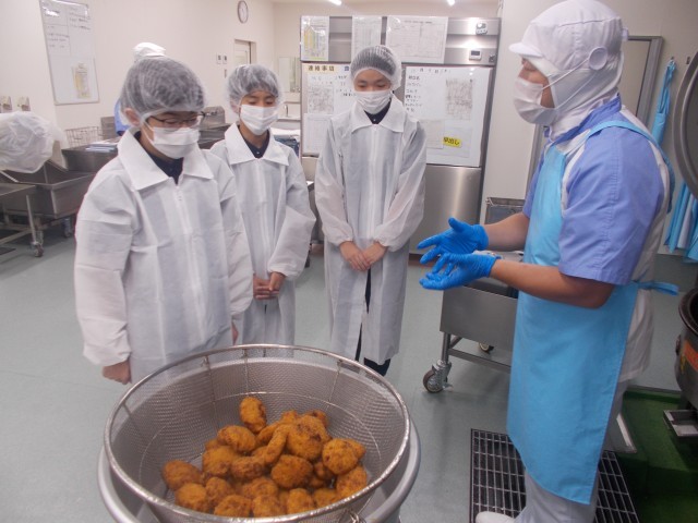 生徒は、真剣な様子でコロッケを見守っています。
