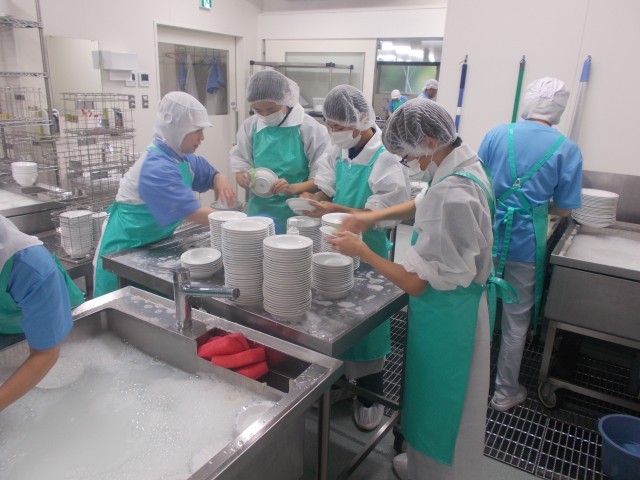 今日の給食では3種類の食器を使い給食を提供したので、2年生のいない今日だけでも約1200枚の食器を洗う必要があります。
