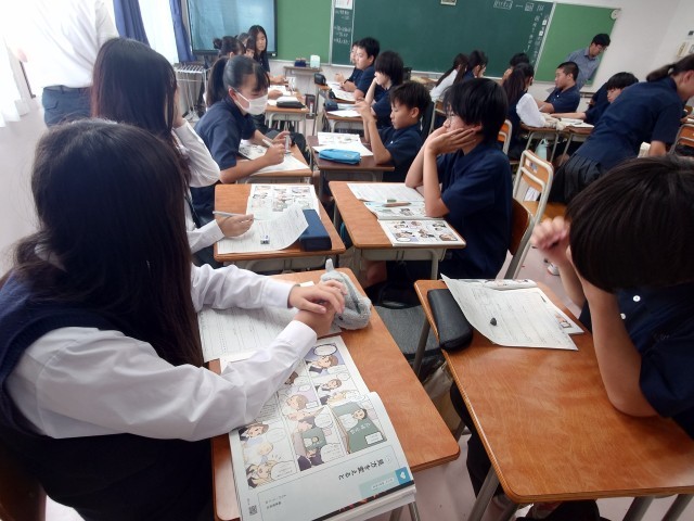 道徳の授業を講師の先生に見ていただき、ご指導いただきました。