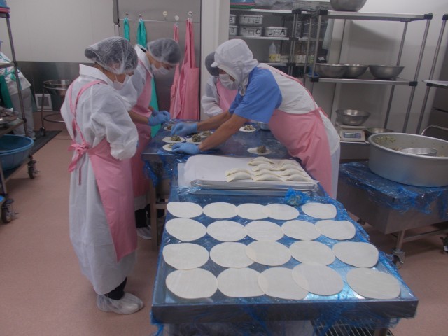 給食室職場体験3日目③ 公開日 2025/10/10 更新日 2025/10/10 給食 今日も昨日に引き続き約400個程度のぎょうざを包みます。飲み込みが早く包むスピードが徐々に速くなっています。給食時間に間に合うよう時間との勝負です。 いいね(1)