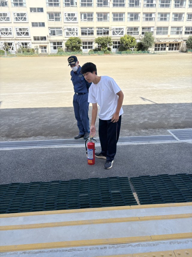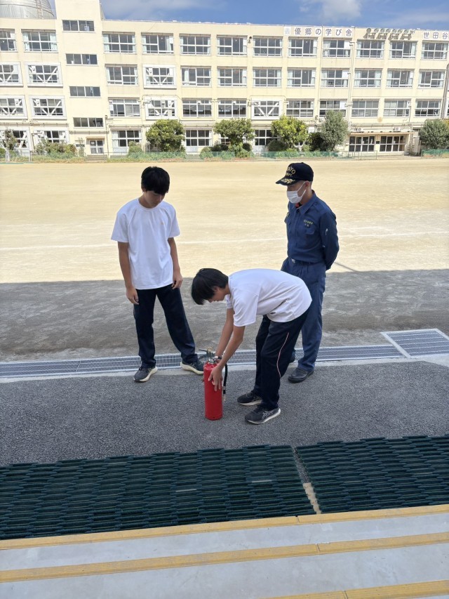 昨日は台風の影響で、消防署に行けなかった生徒も、今日は午前中に弦巻中に来て消防点検などしていました。誰もが、疲れたけど、楽しく充実した経験になったようです。