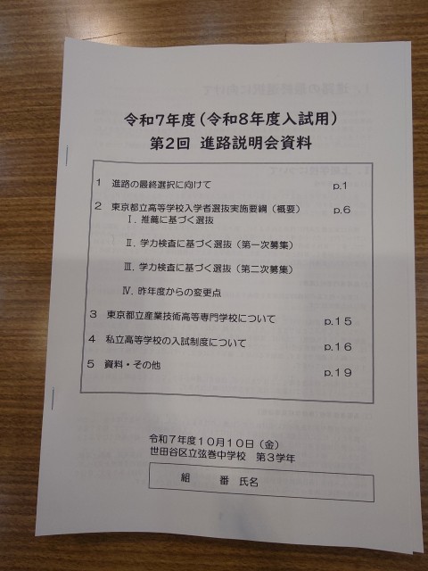 3年生の生徒たちへの進路説明会はすでに終わっています。何か質問等ございましたら、担任や学年の先生にご相談ください。