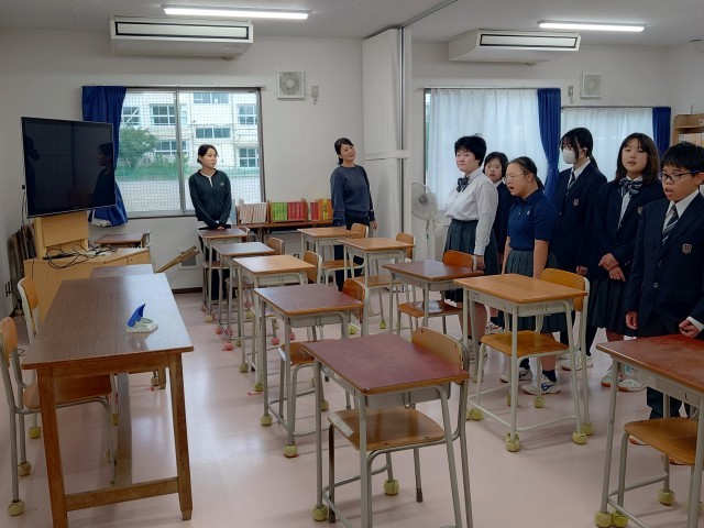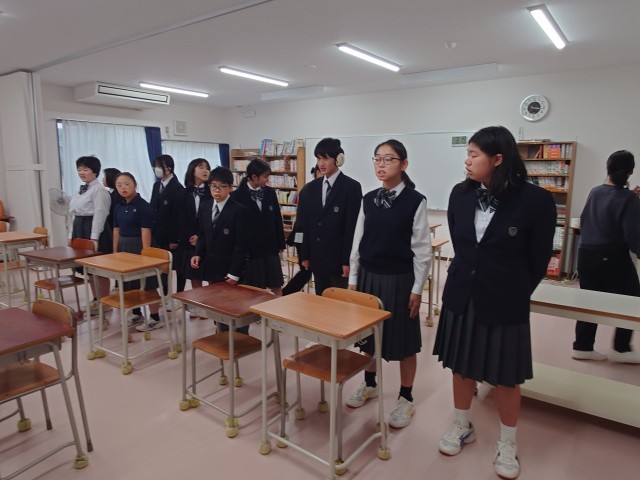 仮校舎での初めての合唱練習。大きく美しい声が、響き渡っています。