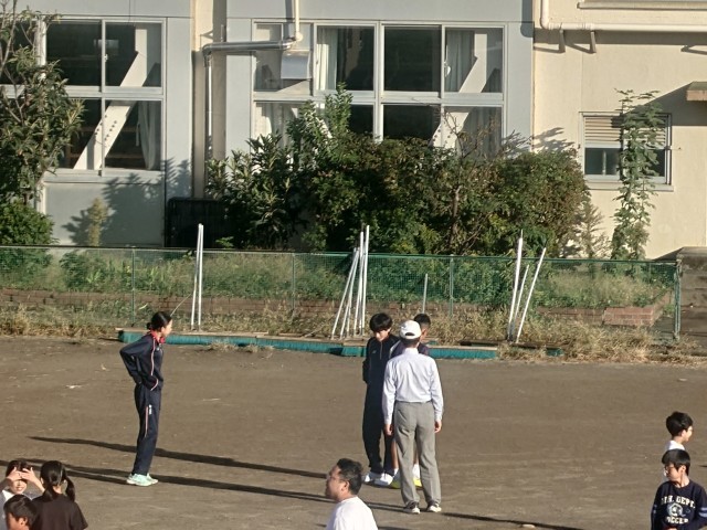 今日は朝から、こども駅伝の練習を校庭でしていました。弦中生も何人か参加しています。