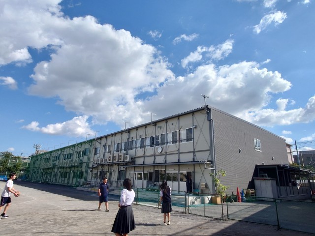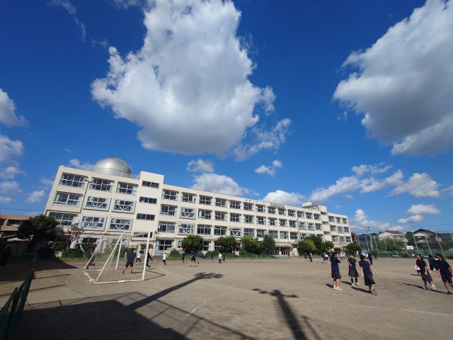 昼休み、元気で校庭で遊んでいる生徒。
