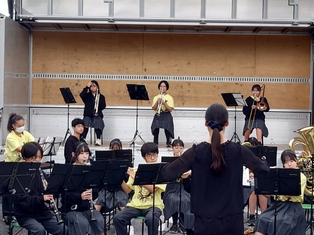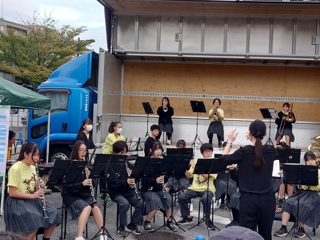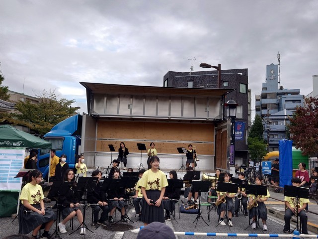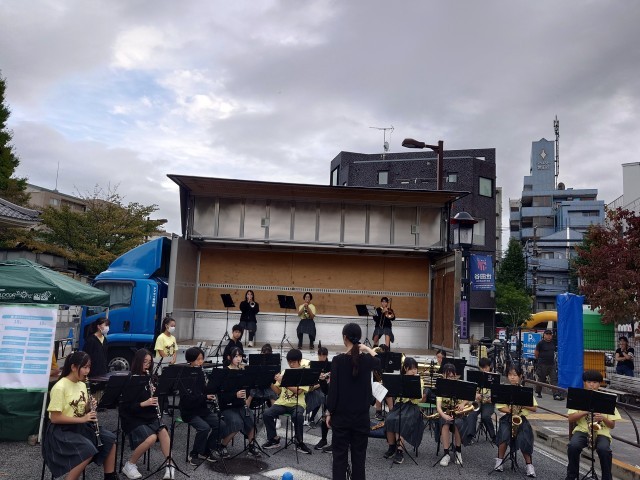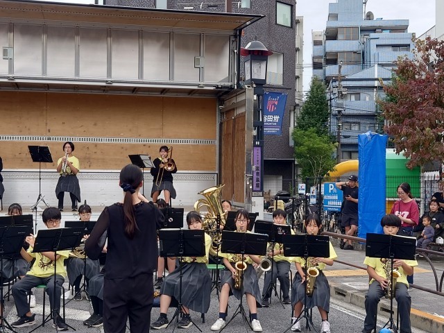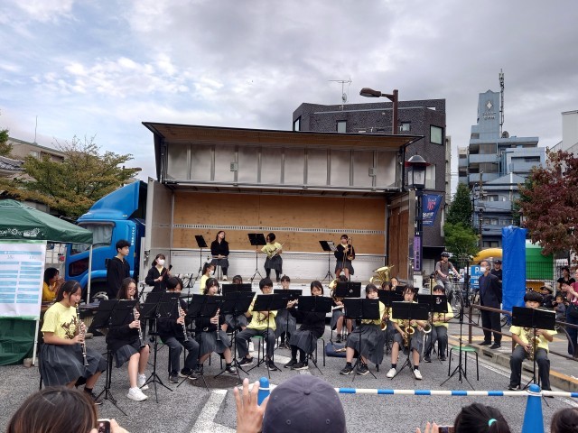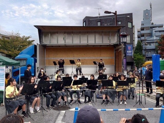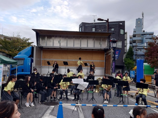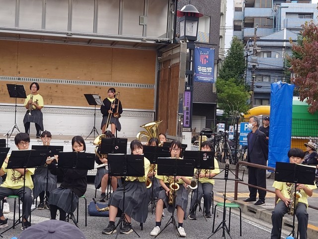 吹奏楽部の生徒が、世田谷駅周辺で毎年行われる楽市楽座2025のステージで演奏しました。