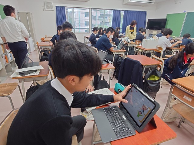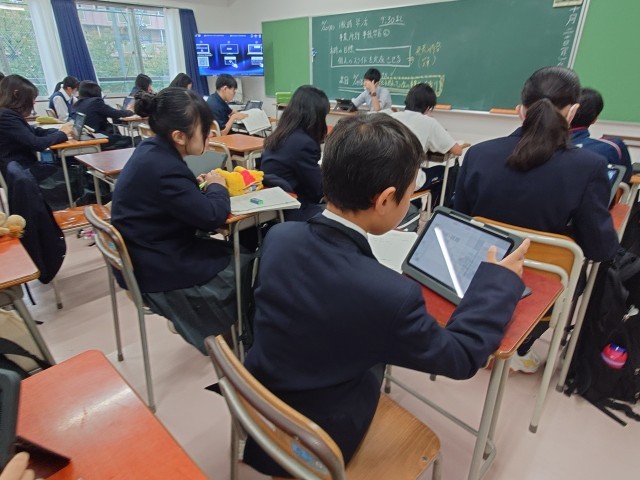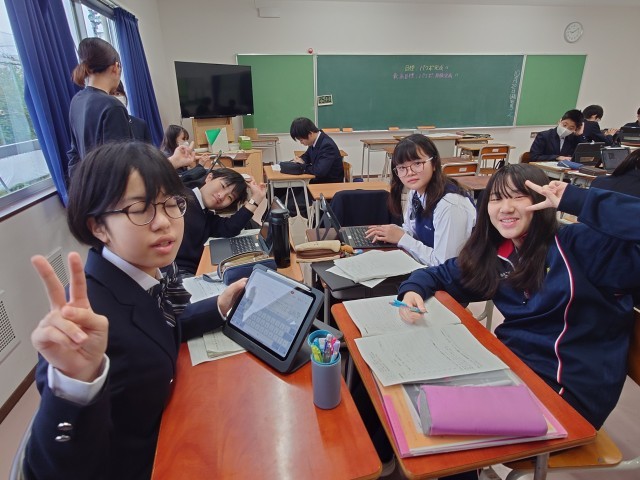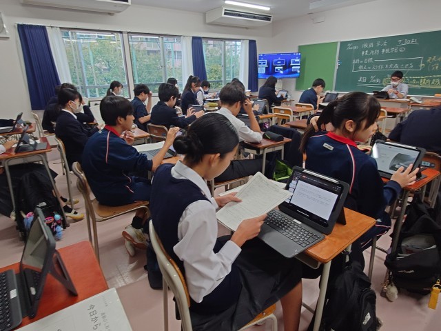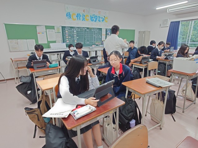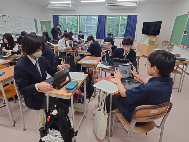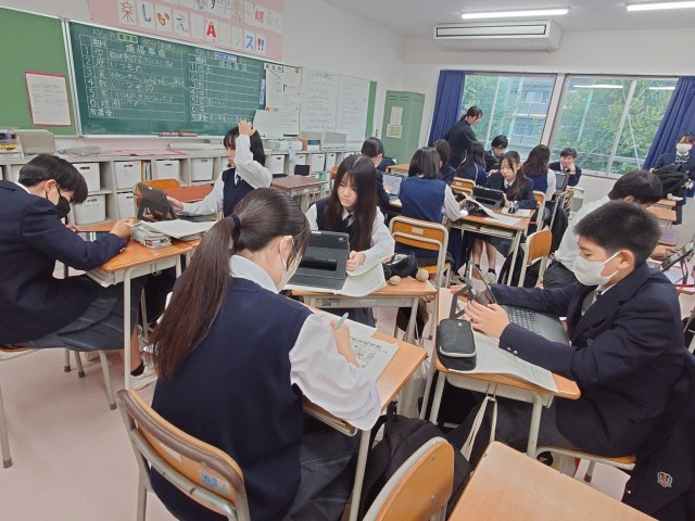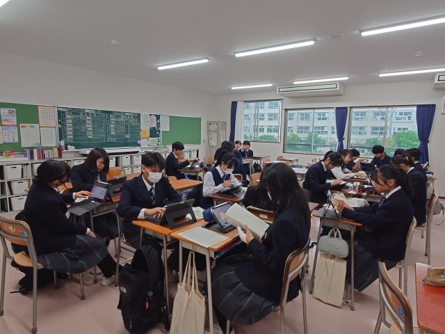 2年生は、職場体験の事後学習です。1年生に発表するためのプレゼン資料を作成中。